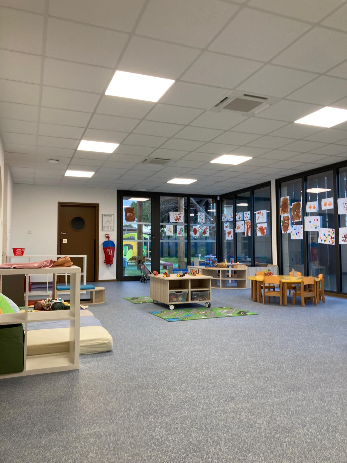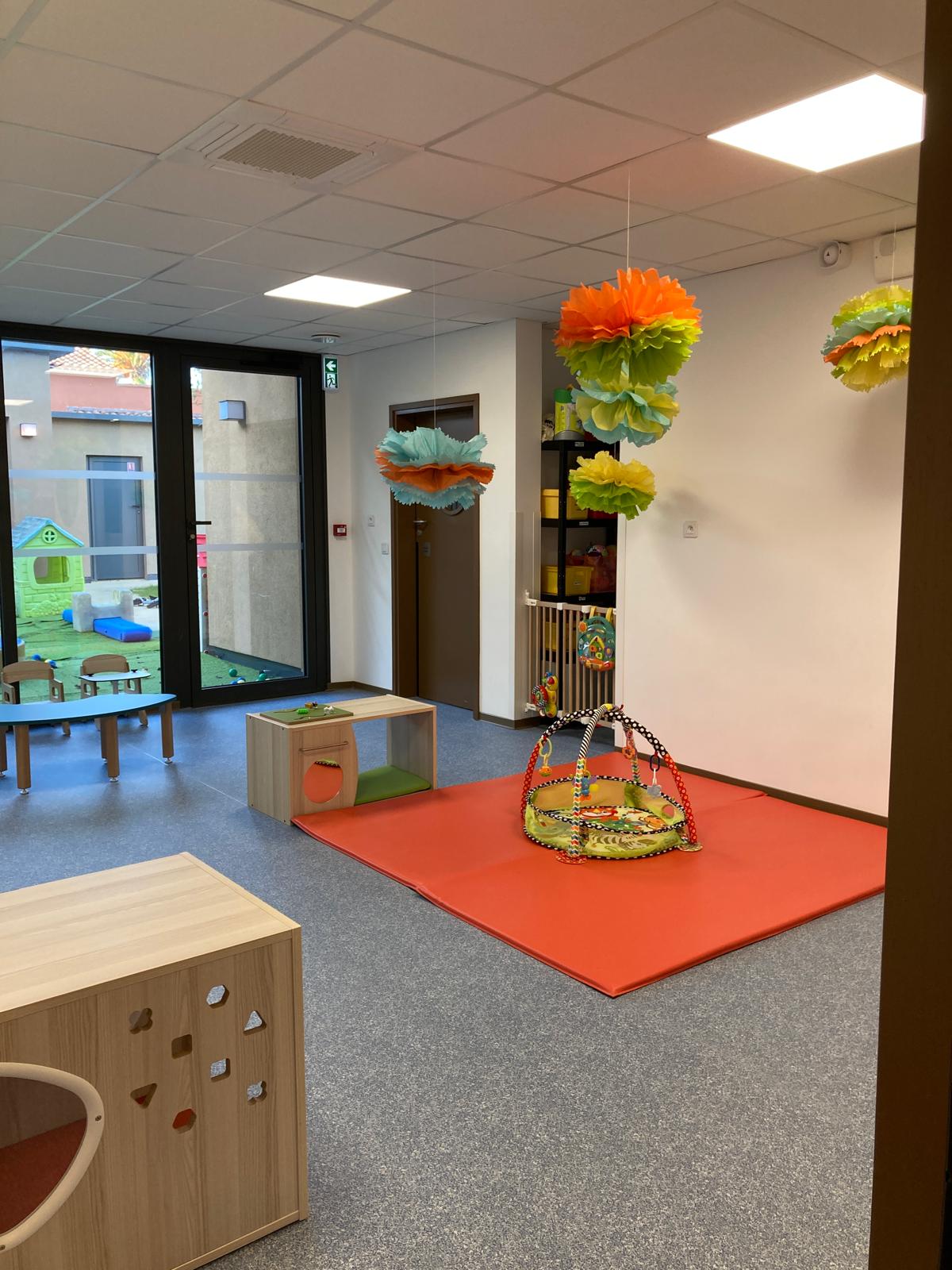 Les enfants sont accueillis dans des locaux mis à disposition par la mairie de 300m², aménagés aux normes d’hygiène et de sécurité de la petite enfance. Les enfants profitent d’un extérieur sécurisé, équipé de jeux et d’un espace potager. L’accueil est réparti en deux groupes, en sections par âge et bénéficient d’activités adaptées à leur développement psychomoteur. Elle est ouverte du lundi au vendredi, de 7h30 à 18h00.